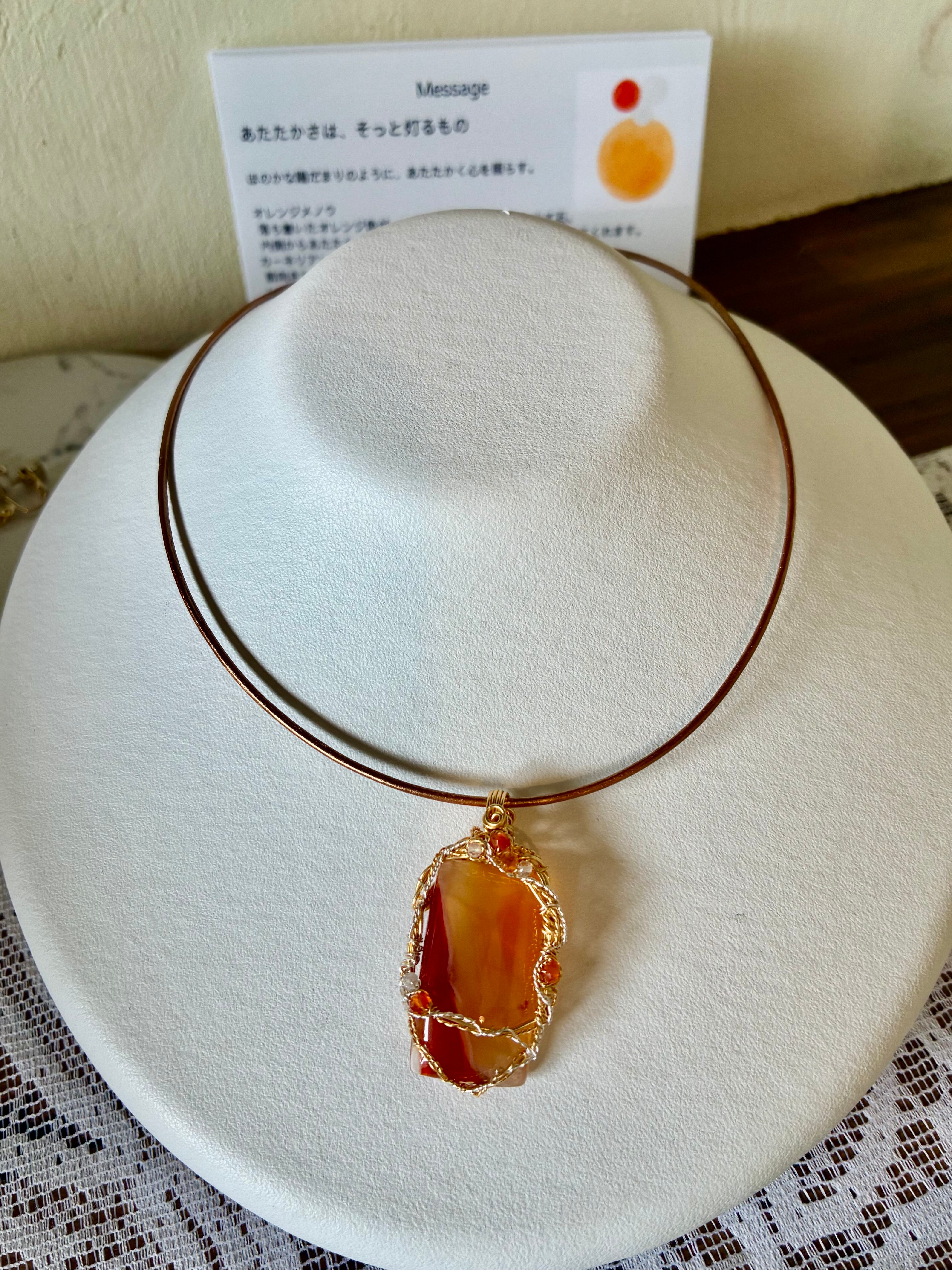 あたたかさを感じるオレンジメノウのペンダントをご用意しました。