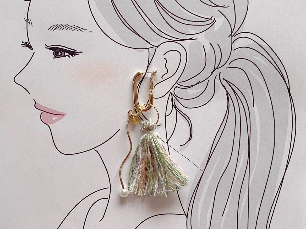 耳飾りのパーツをペンダントトップにしたりアシンメトリーで楽しんだり