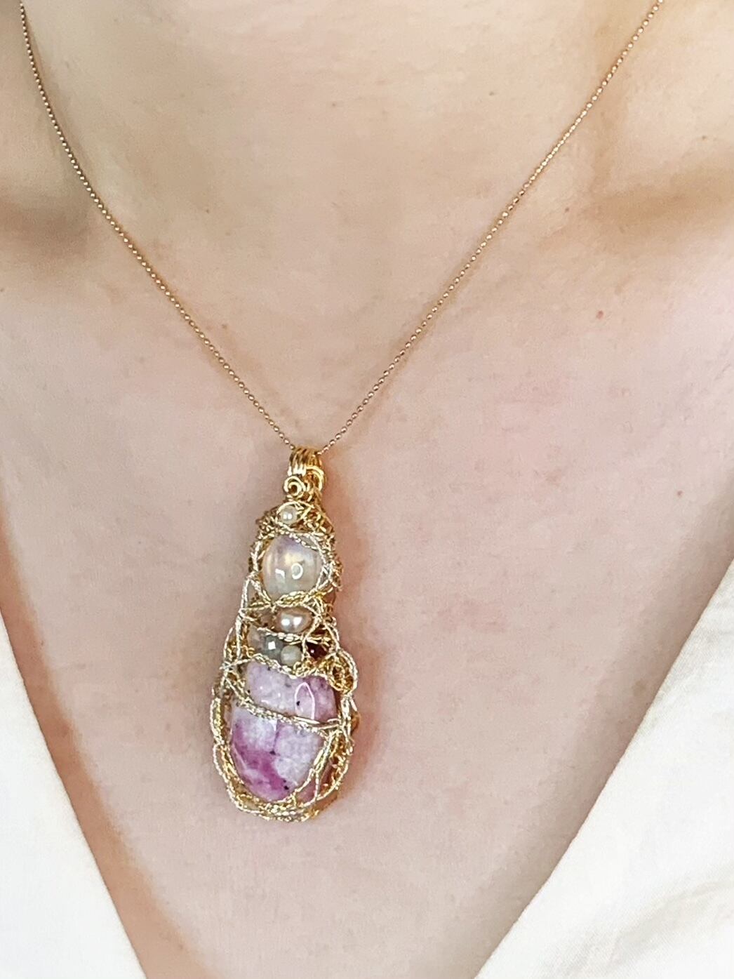 ピンクコバルトカルサイト&ムーンストーンペンダント
