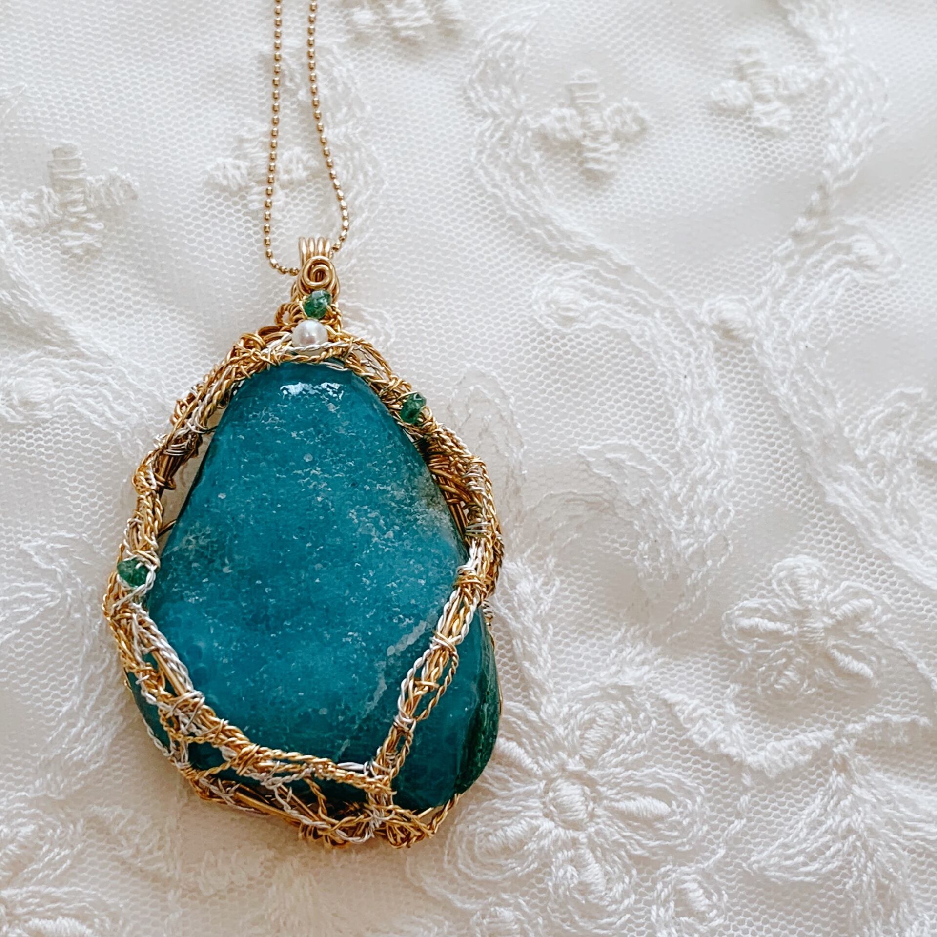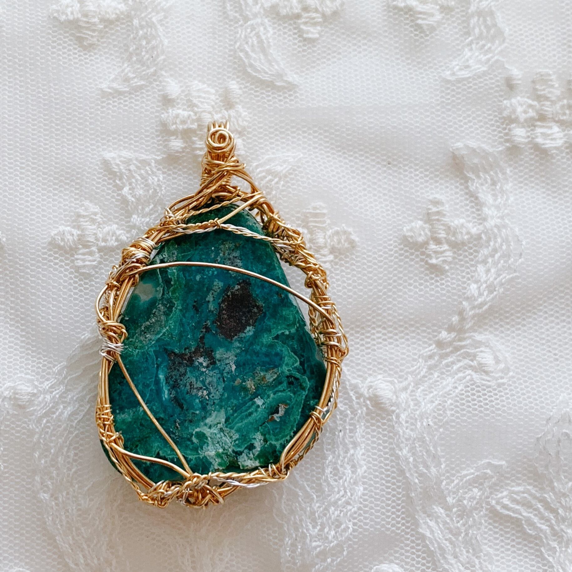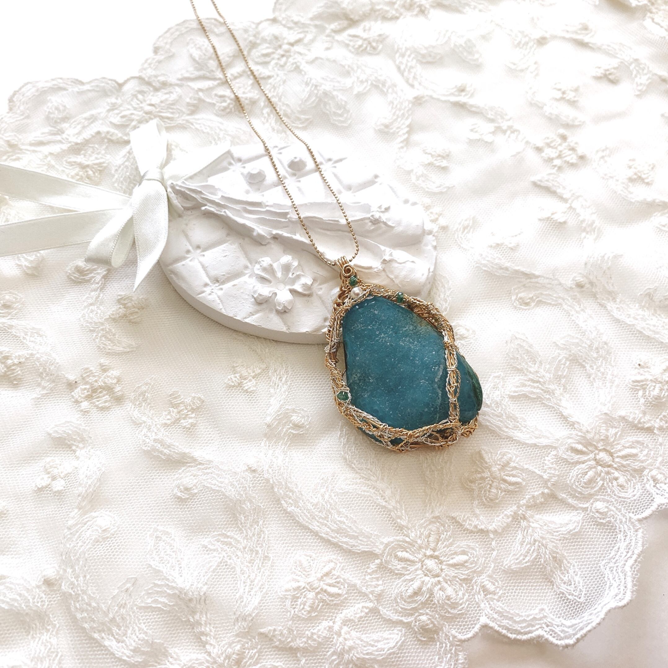 *クリソコラペンダント*天然石ジュエリー*ワイヤー*オンリーワン