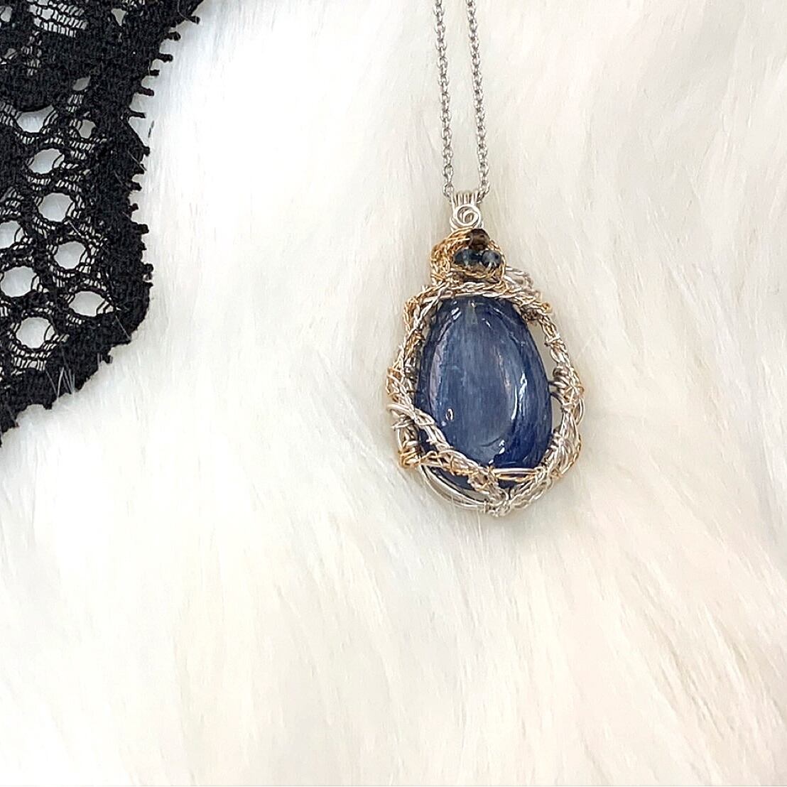 *カイヤナイトペンダント*天然石ジュエリー*独学デザイン*オンリーワン*ワイヤー