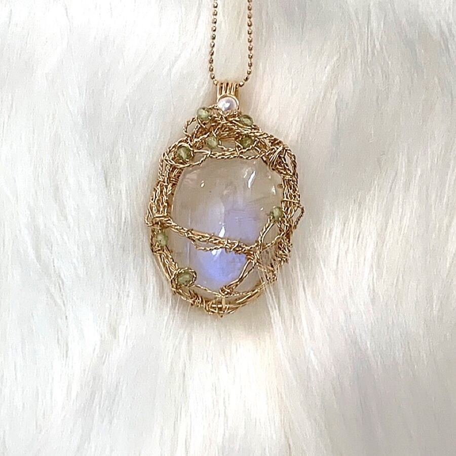 *ムーンストーンペンダント*天然石ジュエリー*独学デザイン*オンリーワン*ワイヤー