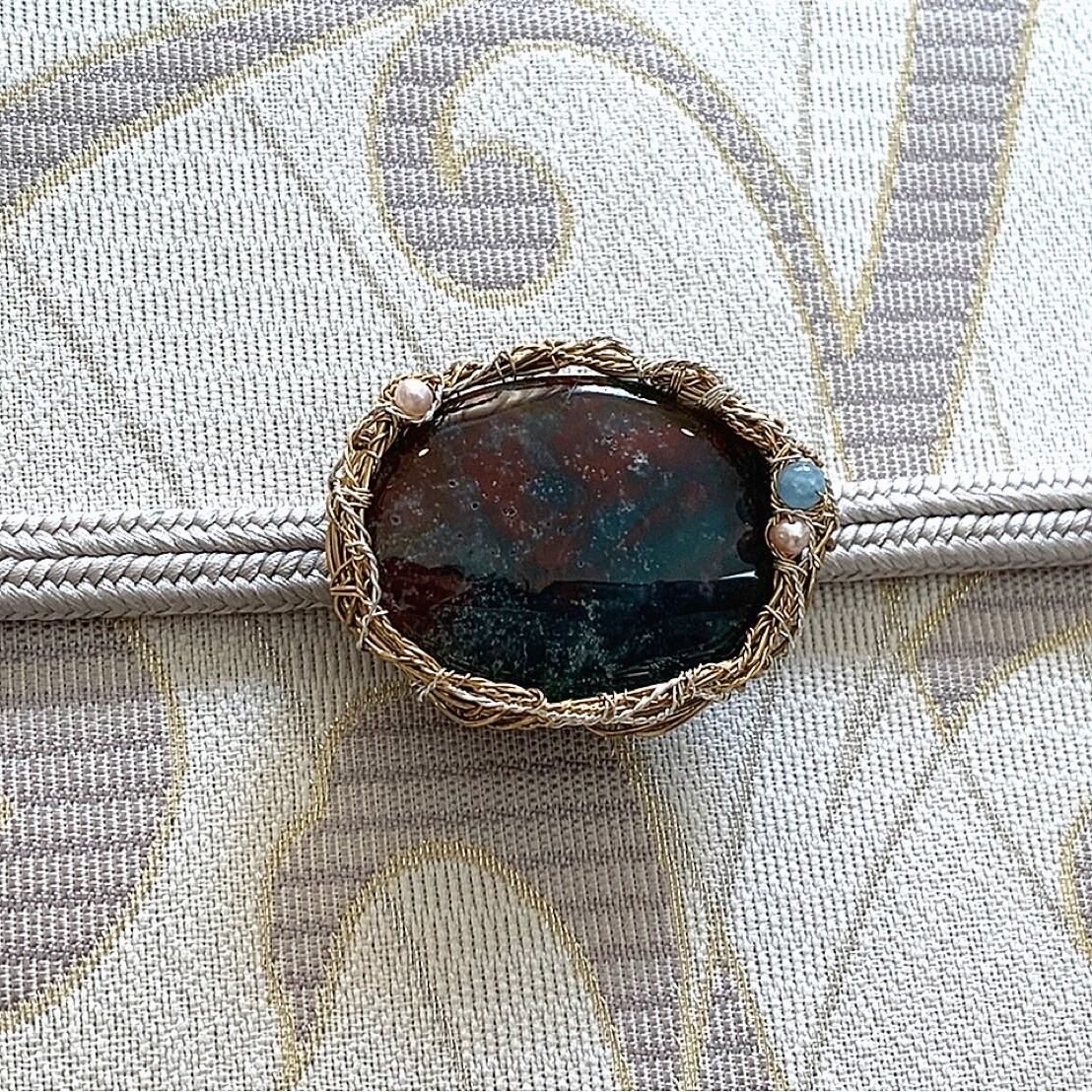 *天然石の帯留*ブラッドストーン*独学デザイン*オンリーワン*ワイヤー
