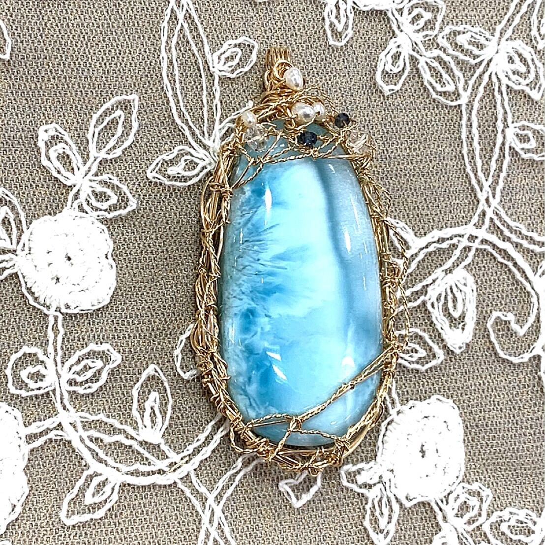 *ラリマーペンダント*天然石ジュエリー*独学デザイン*オンリーワン*ワイヤー