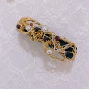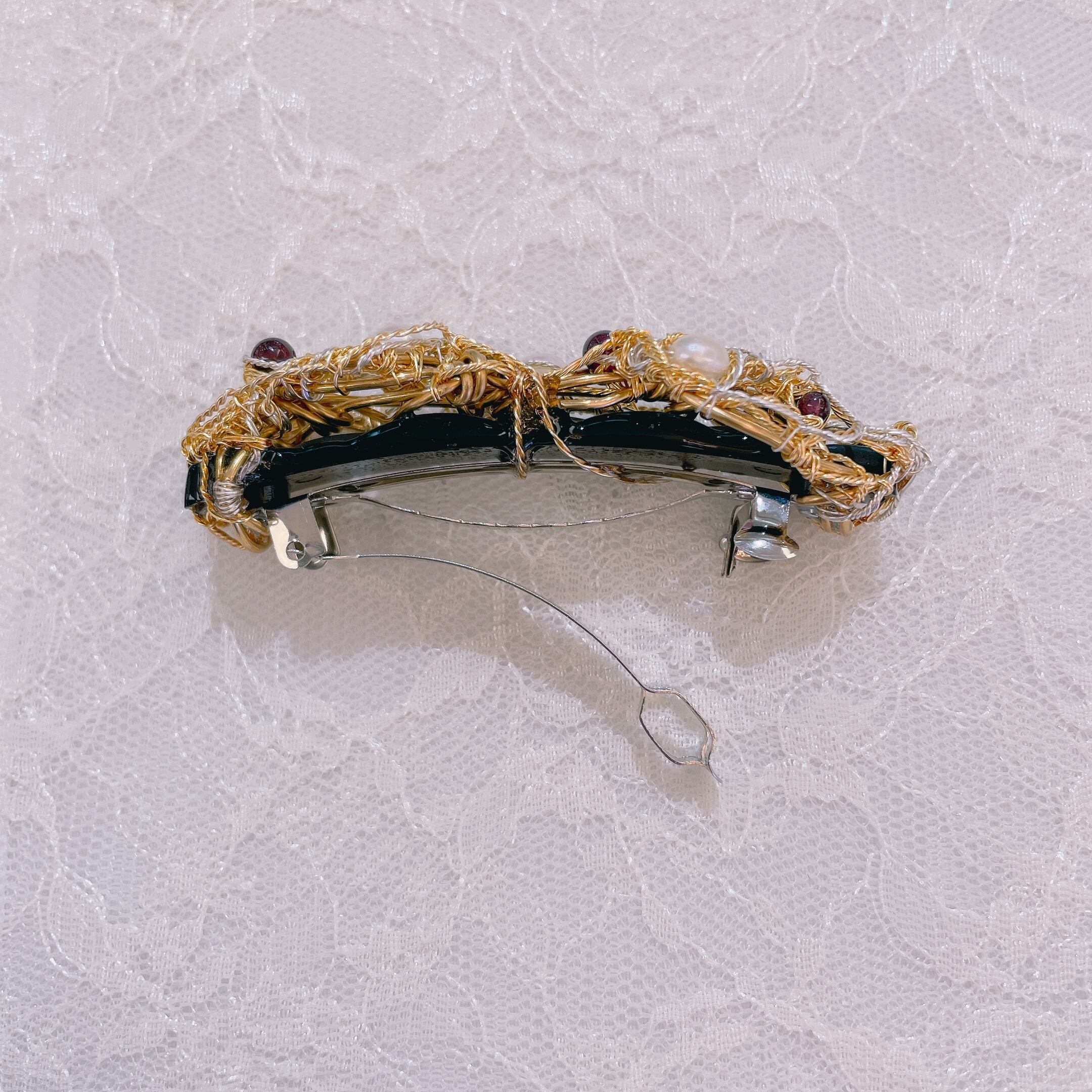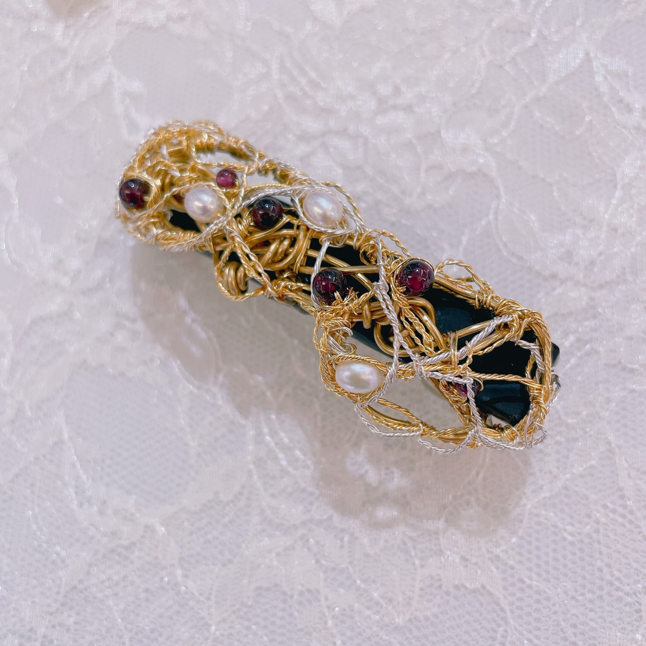 天然石のワイヤーバレッタ*ガーネット*淡水パール